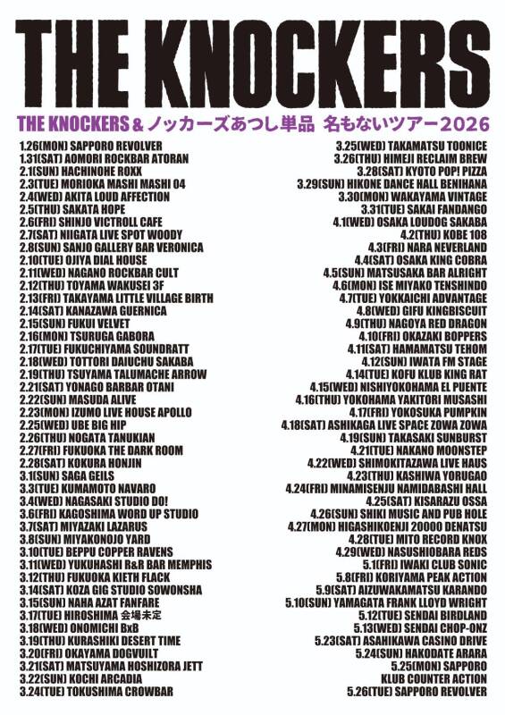 "THE KNOCKERS “THE KNOCKERS&ノッカーズあつし単品 名もないツアー2026″"